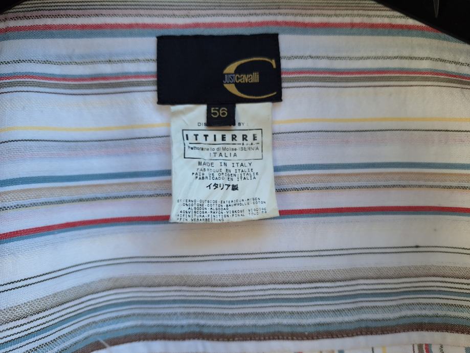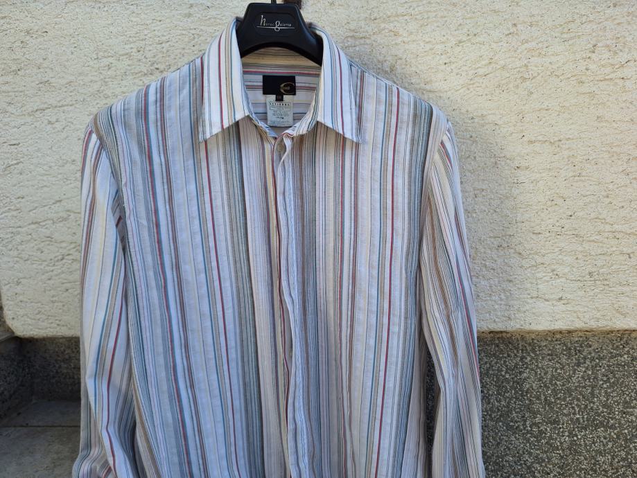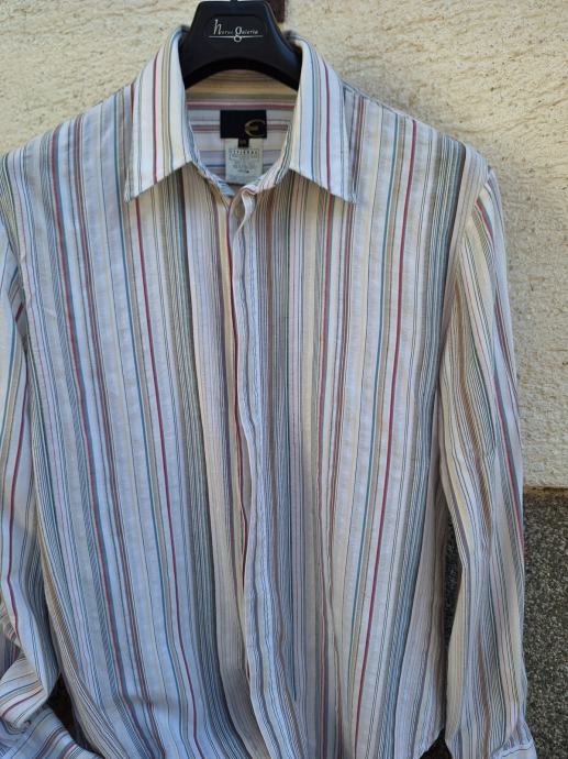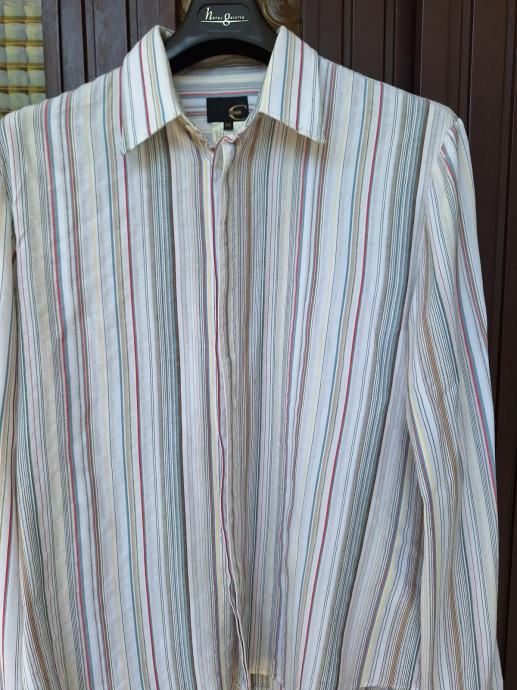 Just Cavalli/Roberto Cavalli muška košulja made in Italy original talijanski konfekcijski broj 56/US 40 iliti XL..širina u ramenima 52 cm, opseg u prsima 112 cm, visina od okovratnika 80cm, dužina rukava 72 cm.....60% pamuk - 40% viskoza - lakše se glača -Glavna praktična razlika između viskoze i potpuno sintetičkih materijala kao što je poliester je u tome što viskoza upija vodu i propušta zrak, pa vas može rashladiti tijekom vrućih dana. ..........bez tragova korištenja.........pogledajte i ostale moje oglase