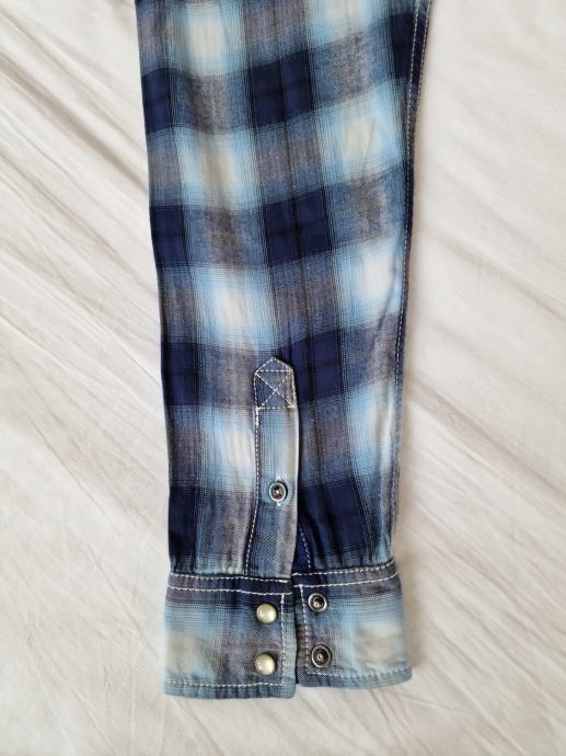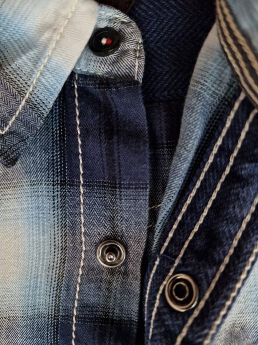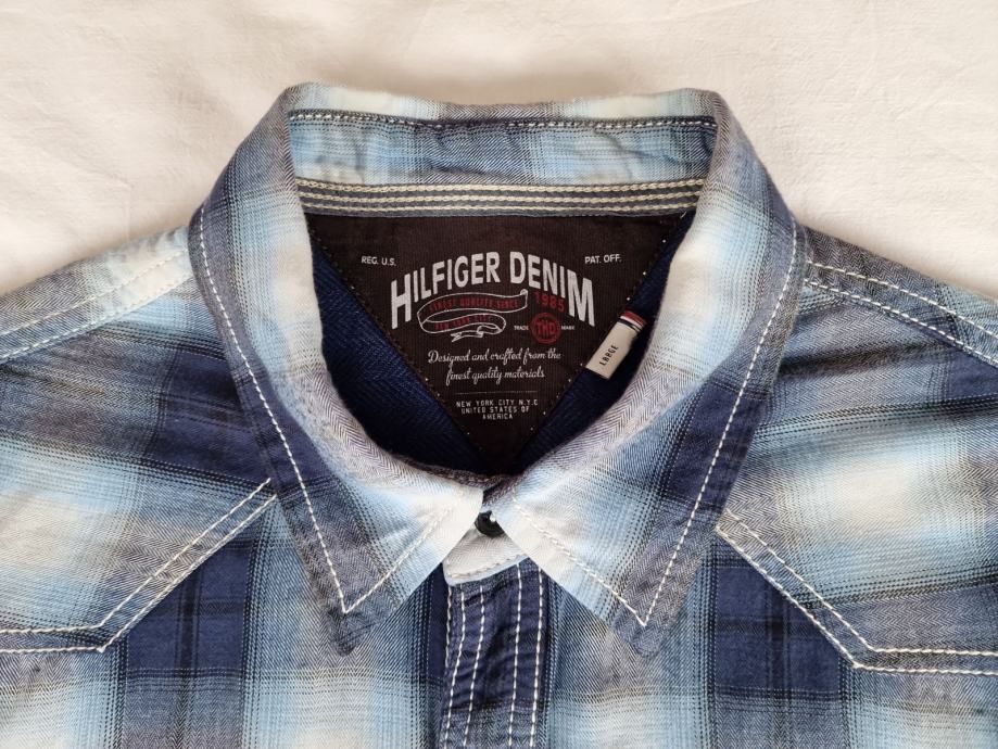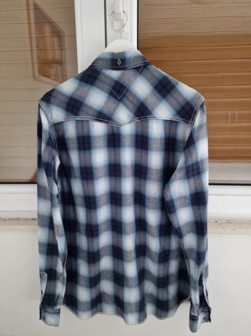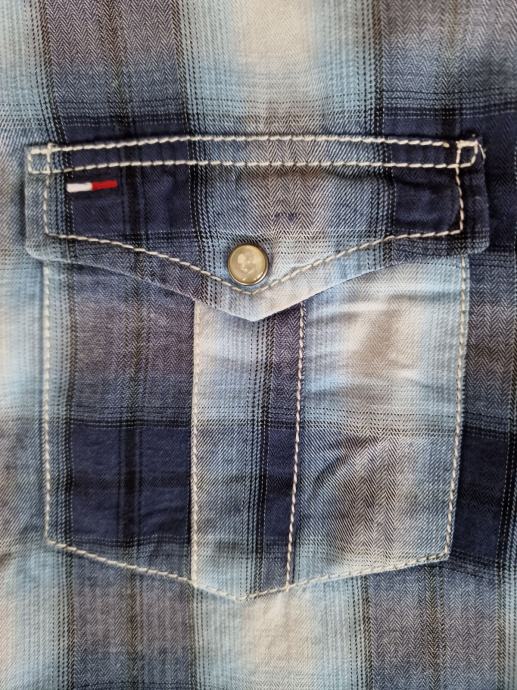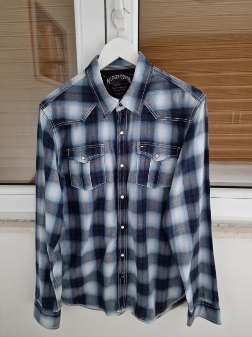 Prodajem Tommy Hilfiger Denim plavu kariranu košulju dugi rukav. Original, odlično očuvana, veličina: L, prsa: 57 cm. Ostale krojačke mjere na upit. Šaljem poštom ili Tisak paketima poslije uplate.
