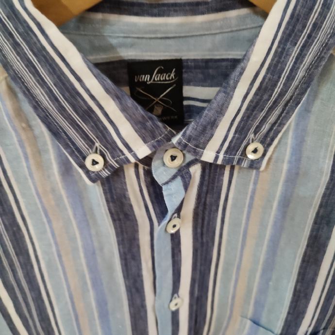 Nova ljetna košulja, s deklaracijom, L, pamuk i lan, prava prozračna, ljetna, poznati i skupocjeni brend muških košulja, VanLacck, prodajem jer je osobi kojoj je namijenjena ipak velika. Rado bih izvršila povrat barem djela novca, onaj tko kupi, neće požaliti...predivne nijanse plavih boja i predivan, ugodan materijal, sportski elegantna, pogledajte košulje ove marke na internetu....