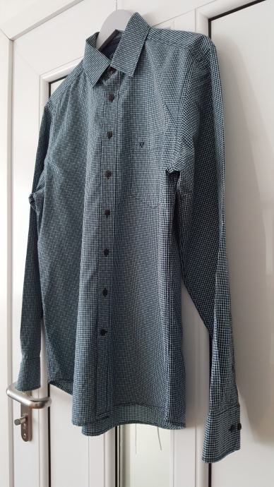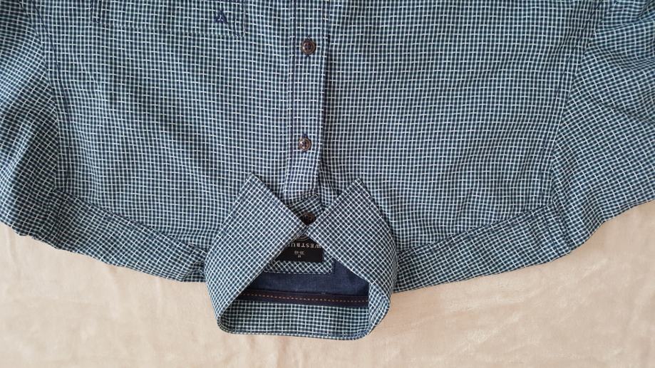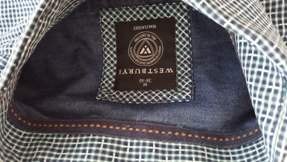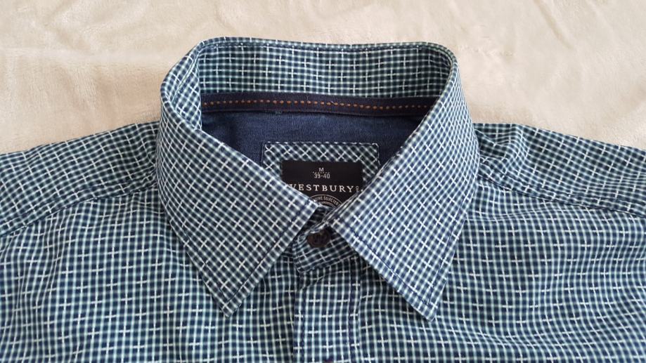 Prodajem nikad nosenu kosulju Westbury vel L, na kosulji je vel M ali je veci kroj kao nas L ,sirina ramena 48 cm, sirina prsa mjereno ispod pazuha 58 cm, duzina rukava mjereno od ramena do sake 68 cm, duzina kosulje 78 cm, fini tanji pamuk prekrasna , dvije nijanse plave boje i bijela