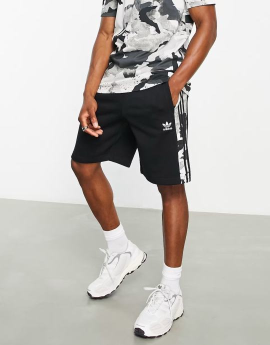 Adidas Originals 3-Stripes Camo Trefoil Logo kratke hlače – Crne, XL – Novo