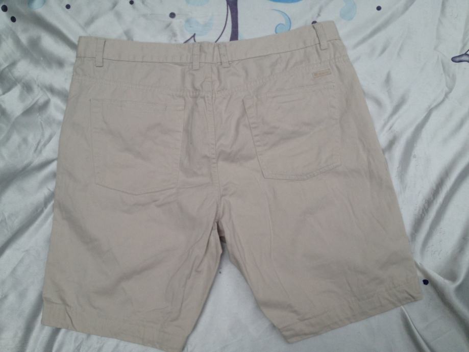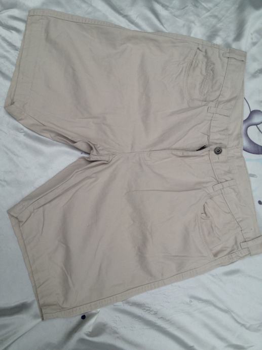 Canda muške kratke hlače boje pijeska od prozračnog pamučnog tekstila - opseg u struku 106 cm, visina hlača 52 cm, donji otvor nogavica 23 cm, otvori za remen 40 mm; 100% pamuk ....džepovi standardni, dva +1 naprijed, dva otpozadi....stanje 9/10