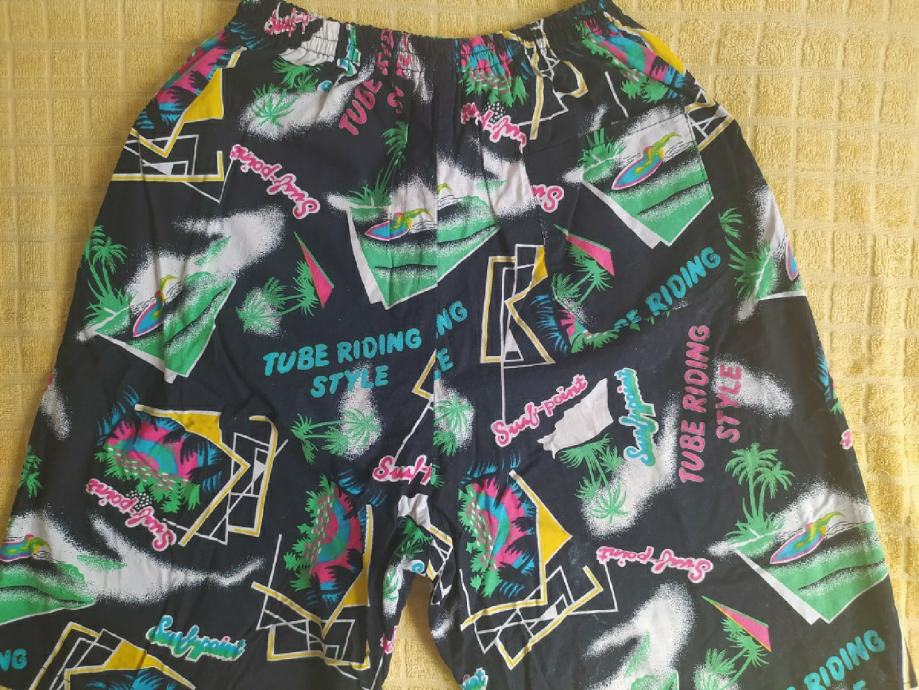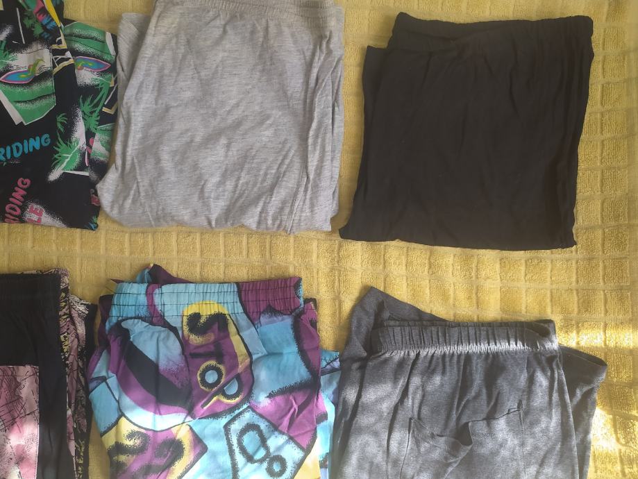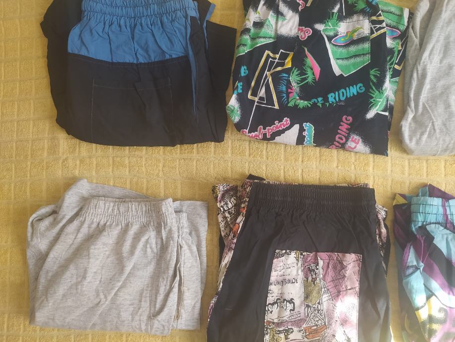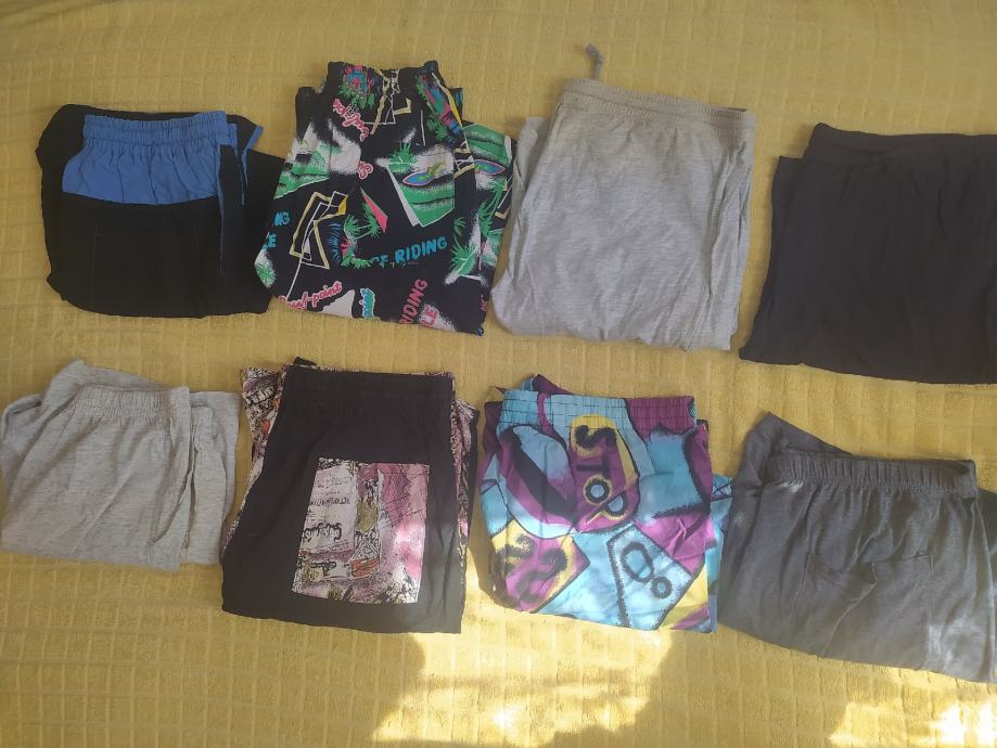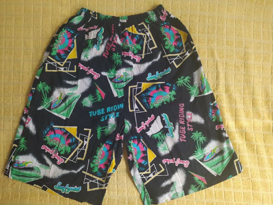 7. Hlače kratke "Plavo ljubičaste" vel L. Plavo ljubičsta žuta boja. Za nositi van, za po doma, priroda, plaža. Džepove nema. Mogu biti i kao kupaće radi "šuškavog" materijala". Stanje odlično . Struk 42cm (u zategnutom stanju - rastezljiva guma), dužina 43cm, nogavice 30cm.