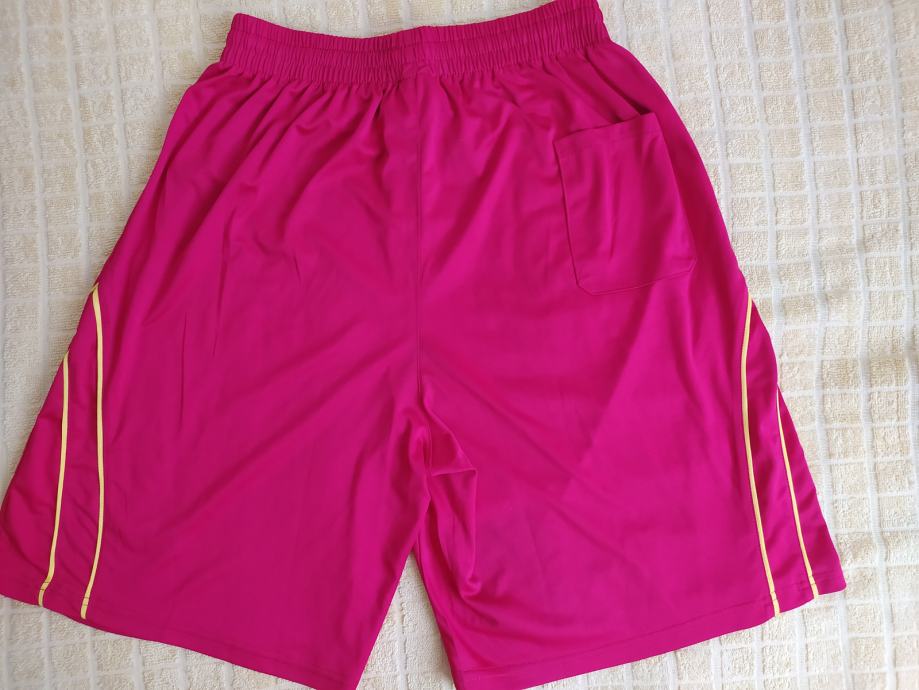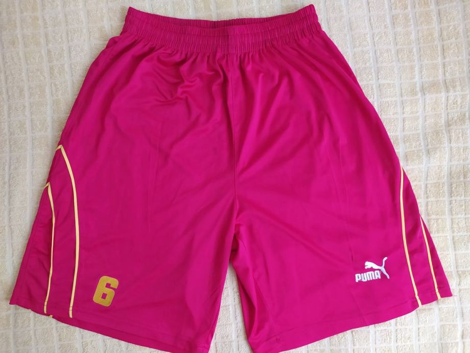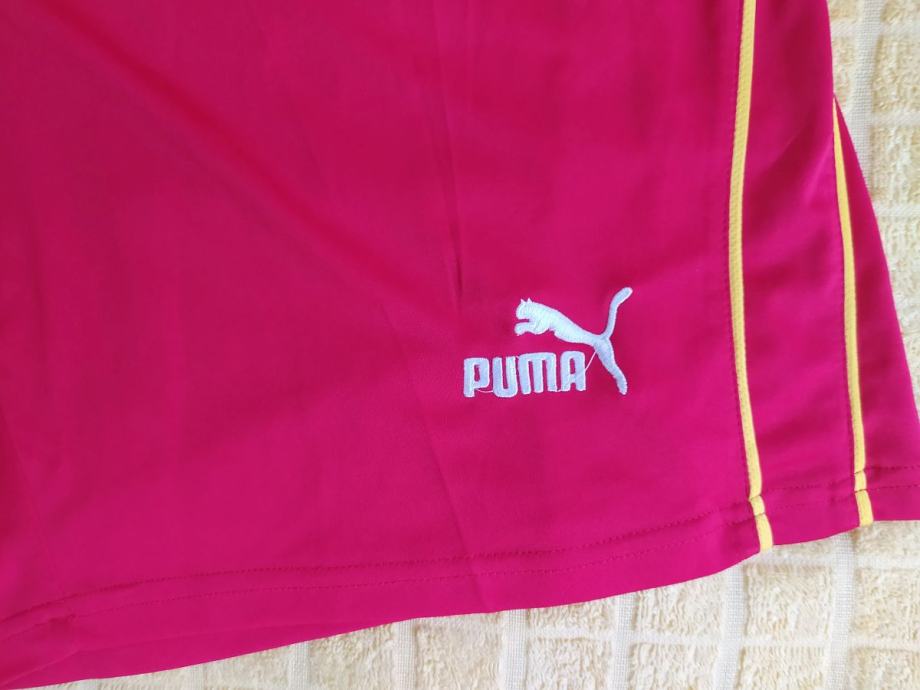 Kratke hlače Dress "PUMA" vel 2XL. Crvene kratke pamučne hlače s žutim detaljima i bijelim ušivenim Puma znakom. Odlično stanje, iznadprosječne kvalitete materijala. Struk 31cm (u zategnutom stanju - rastezljiva guma), dužina 49m, nogavice 32m.
