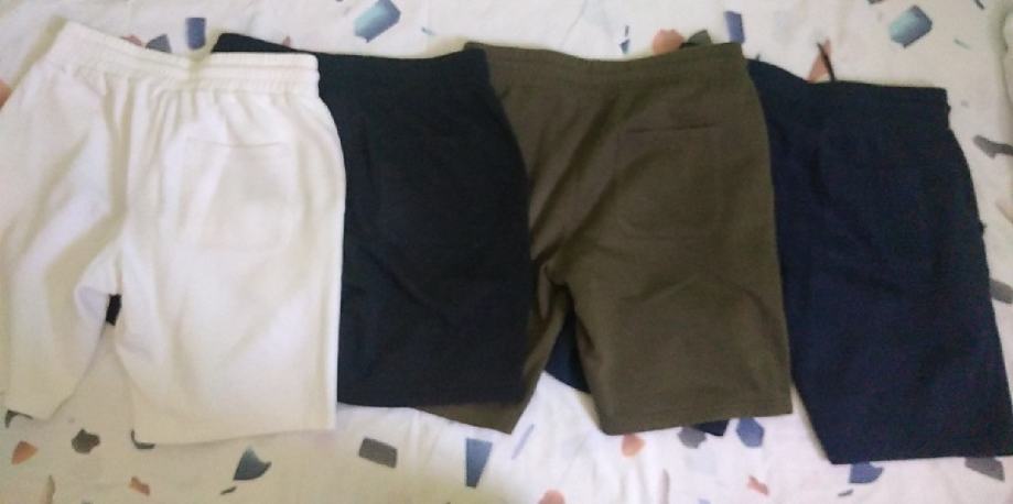 Bijele, crne, tamnozelene i tamnoplave kratke hlače M veličine.