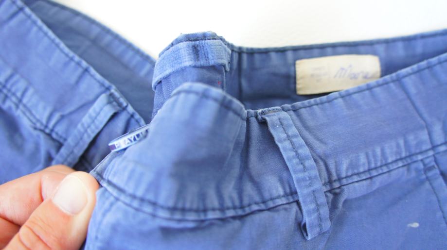 100% PAMUK, BOJA SVIJETLO TAMNO PLAVA, MINIMALNI ZNAKOVI KORISTENJA, TALIJANSKA KVALITETA, DUZINA MALO IZNAD KOLJENA.