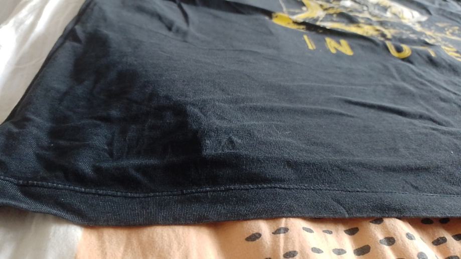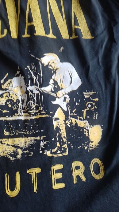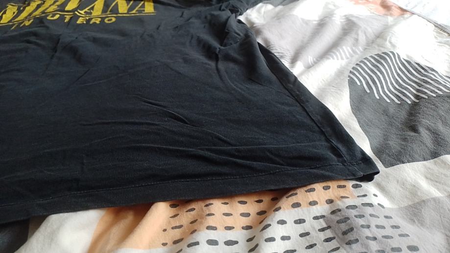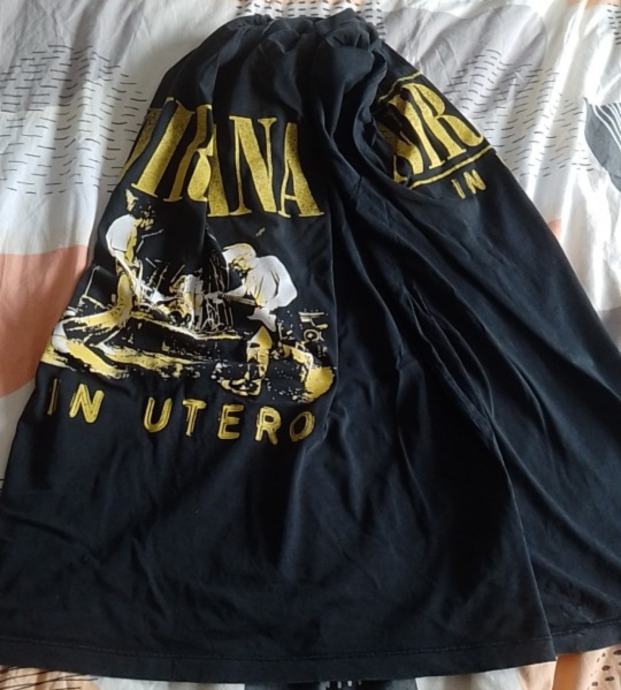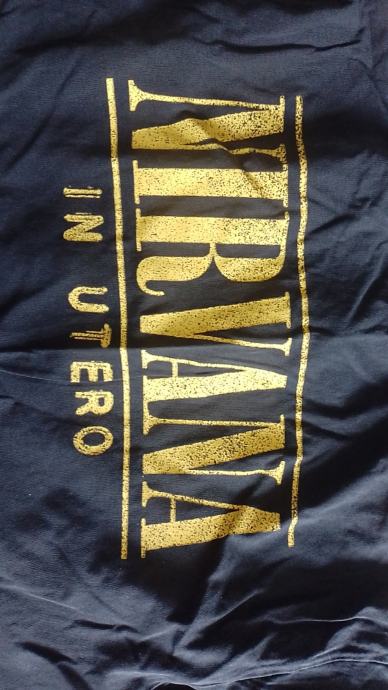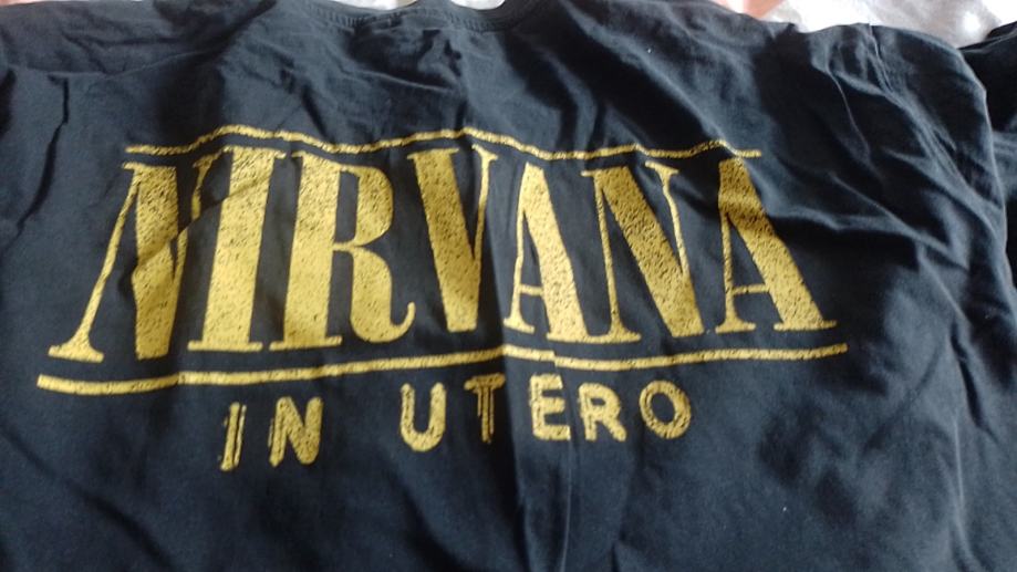 Prodajem malo nošenu crnu Nirvana In Utero majicu kupljenu u Primark trgovini u Njemačkoj, veličine 3XL. Izrađena je od pamuka i odlično očuvana, s prepoznatljivim zlatnim printom kultnog benda.