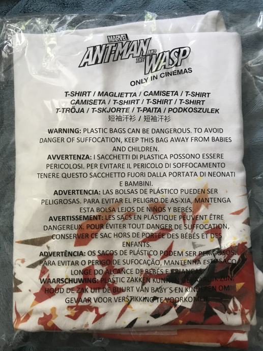 Muška majica S veličine iz Marvel filma Ant Man and the Wasp, nema je u slobodnoj prodaji, napravljena samo za promociju.