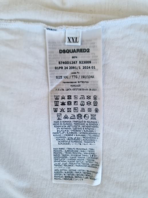 Prodajem Dsquared2 bijelu logo print majicu kratki rukav. Original, odlično očuvano, veličina: XXL, prsa: 64 cm, ramena: 54 cm, dužina: 76 cm i dužina rukava: 30 cm. Šaljem poštom ili Tisak paketima poslije uplate.