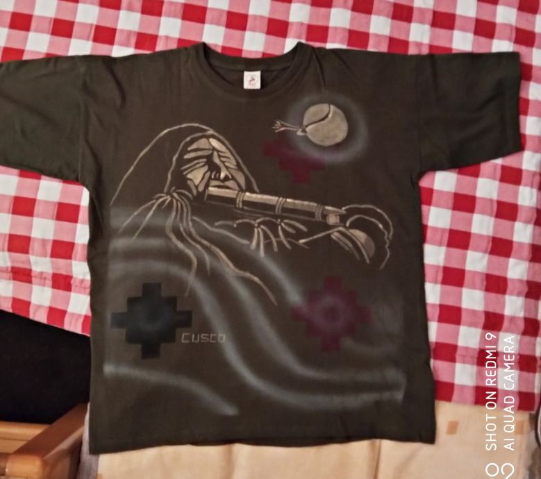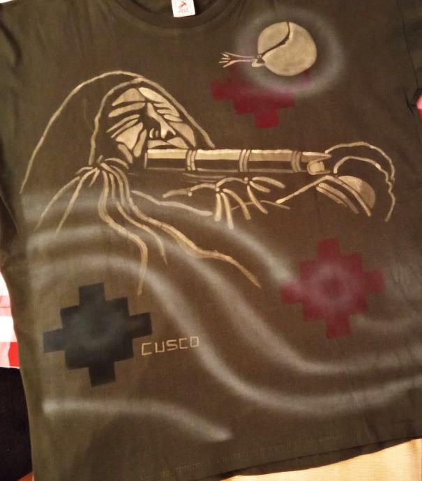Pamučna majica ručno oslikana, veličina L , sa motivima Inka , kupljena u Cusco u ( Peru ) , prije polaska na Machu Picchu