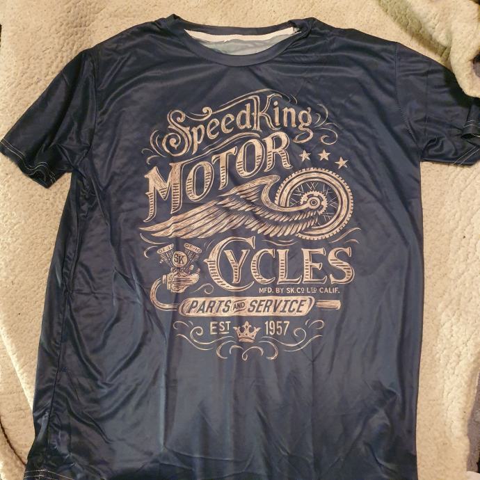 Muška majca plava s motociklističkom slikom na prednjem djelu. Veličina 2XL.