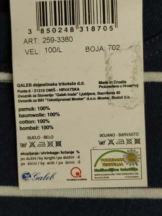 Majica " Adriatic" vel L nova, bijela boja s natpisom na prednjoj strani. Dopadljiva majica za ljetne dane. Nova nikad nošena stoju u ormaru. Majica je iznadprosječene kvalitetne tkanine. Dužina 73cm, širina 52cm, ramena 46cm.