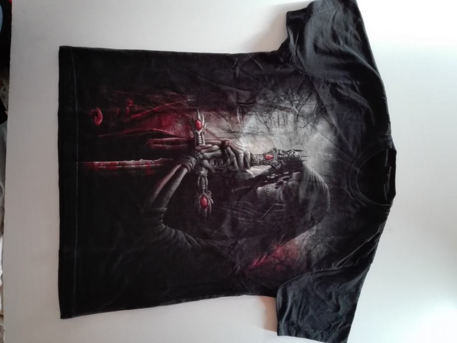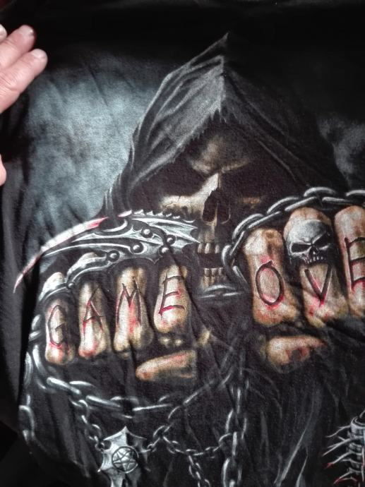 Majica kratkih rukava sa slikama. Majice su u izvrsnom stanju, nigdje nisu oštećene, print je vrhunski, jedna je veličine L, a druga M. Svaka ima sliku sa obje strane. Jedna majica košta 26€, obje zajedno za 50. Na sms nemogu odgovoriti, najbolje bi bilo da me nazovete 099 687 5657 ili pošaljete poruku preko Njuškala.