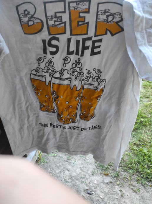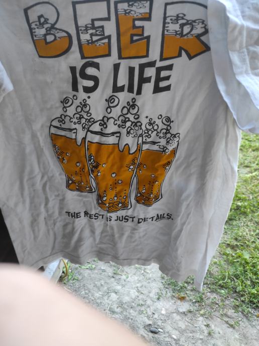 Nova majica sa šaljivim natpisom na Engleskom( pivo je život).Velicina je L,a materijal 100% pamuk.Za sve informacije nazovite ili pošaljite upit na Viber ili Njuskalo, a Šaljem Poštom ili Tiskom ili u dogovoru sa kupcem, stanje kao na slikama,NOVO!!