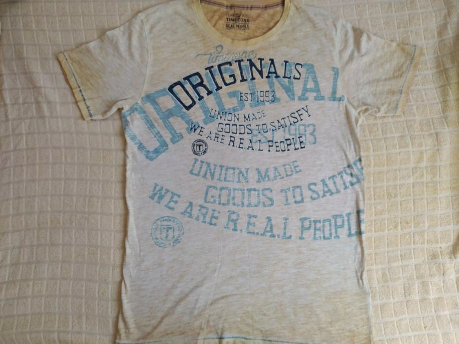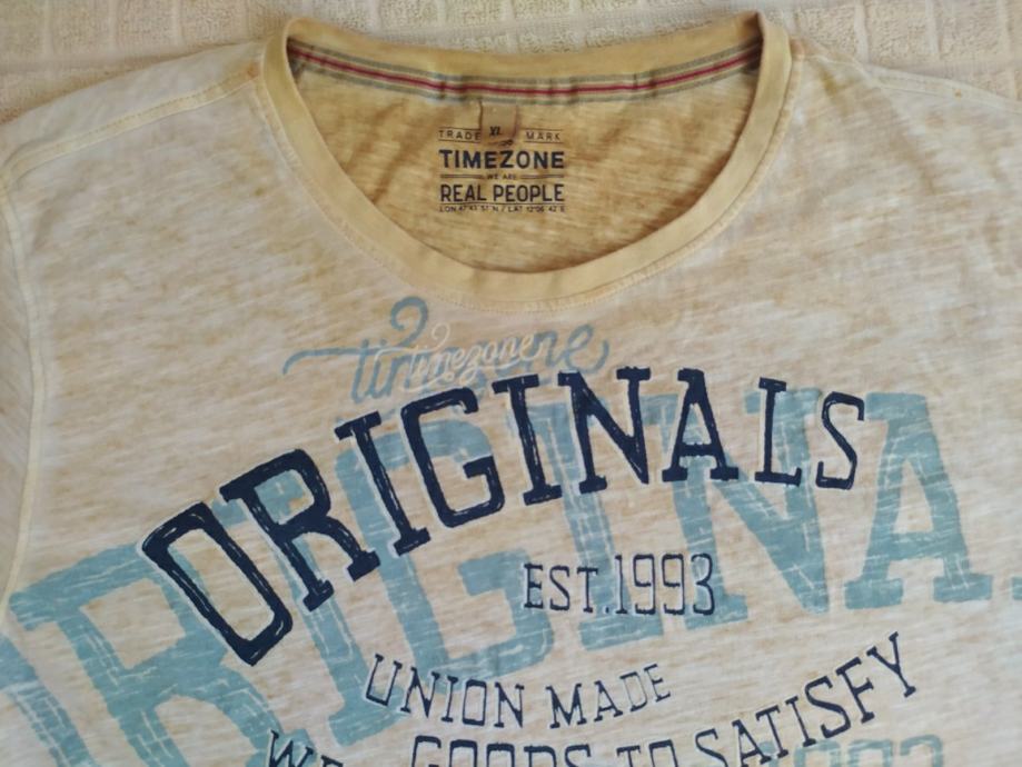 Majica " Timezone" vel XL nova, žute boja s natpisom na prednjoj strani. Made in Bangladesh. Materijal 100% pamuk. Odlična majica za ljetne dane. Majica je iznadprosječene kvalitetne tkanine. Dužina 74.5cm, širina 52m, ramena 45.5cm.