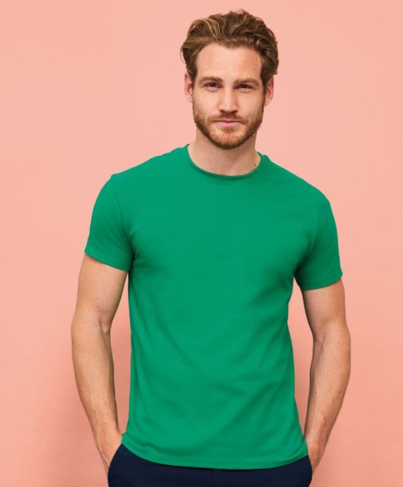 Kvalitetna pamučna muška T-shirt majica kratkih rukava s ovratnikom s dodatkom elastina kako bi se postigla vrhunska udobnost pri nošenju i dugotrajna opstojnost oblika. Bez bočnih šavova. Dostupna je u vrhunskoj paleti boja i veličinama od XS do čak 5XL.