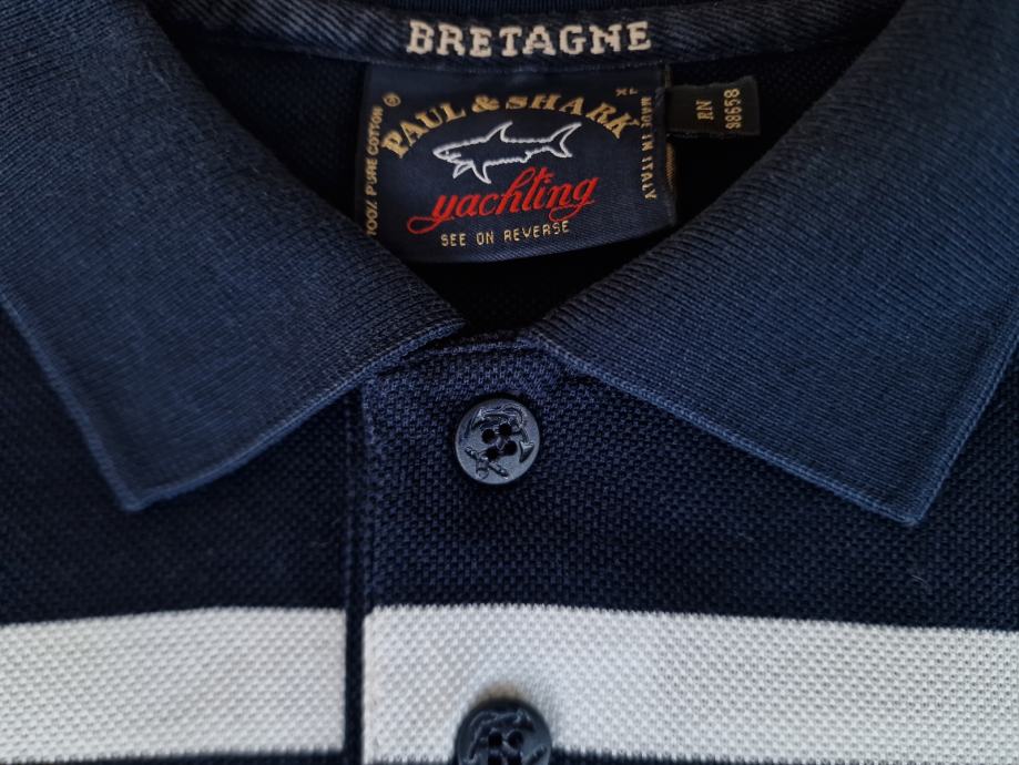 Prodajem Paul & Shark Yachting Bretagne modru prugastu polo majicu kratki rukav. Original, odlično očuvana, veličina: XL, prsa: 65 cm, ramena: 59 cm, dužina: 70 cm i dužina rukava: 23 cm. Šaljem poštom ili Tisak paketima poslije uplate.