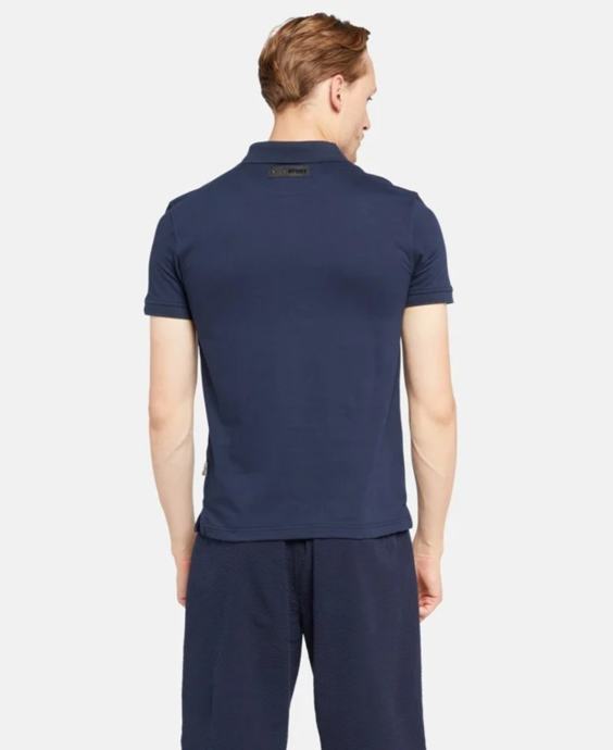 Divna, tamno, tamno plava boja ( indigo) s bijelim logotipom naprijed i diskretnim, iza kragne, tamnim, na posebnom, pladtificiranom materijalu.