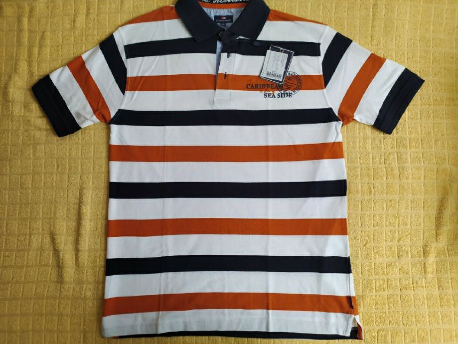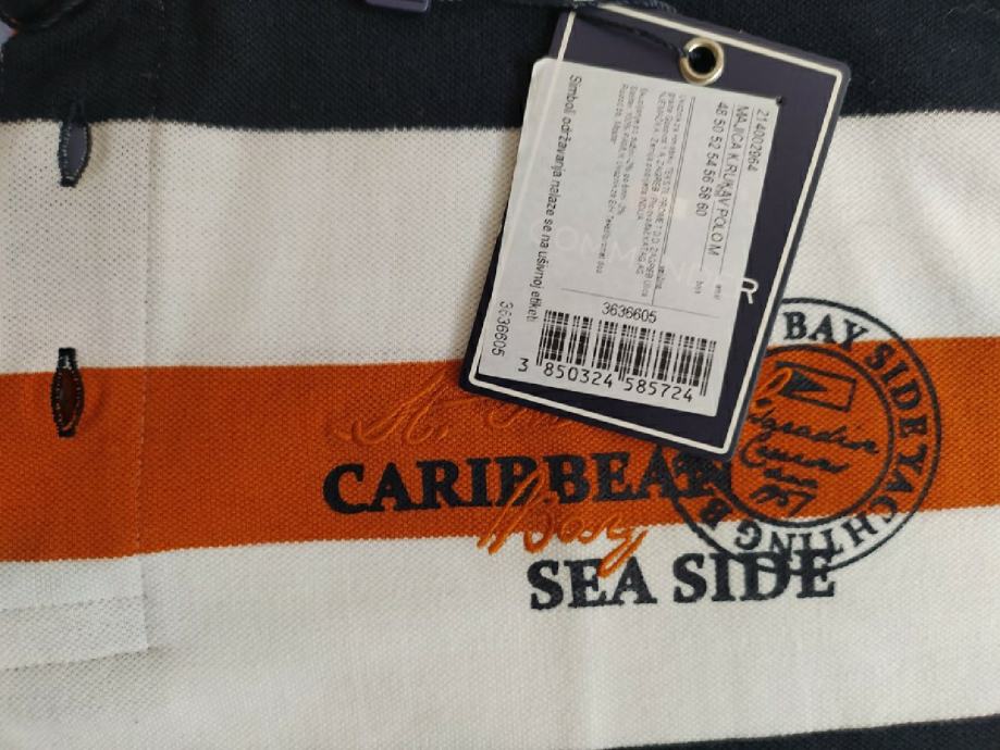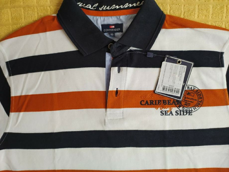 Polo Majica "Commander" vel 52 nova. Bijela plavo smeđa boja - s ukrasnim logom. Materijal 100% pamuk. Dopadljiva majica za ljetne dane. Odlično stanje,nenošena stoju u ormaru. Majica je iznadprosječene kvalitetne tkanine. Dužina 73cm, širina 58cm, ramena 49cm.