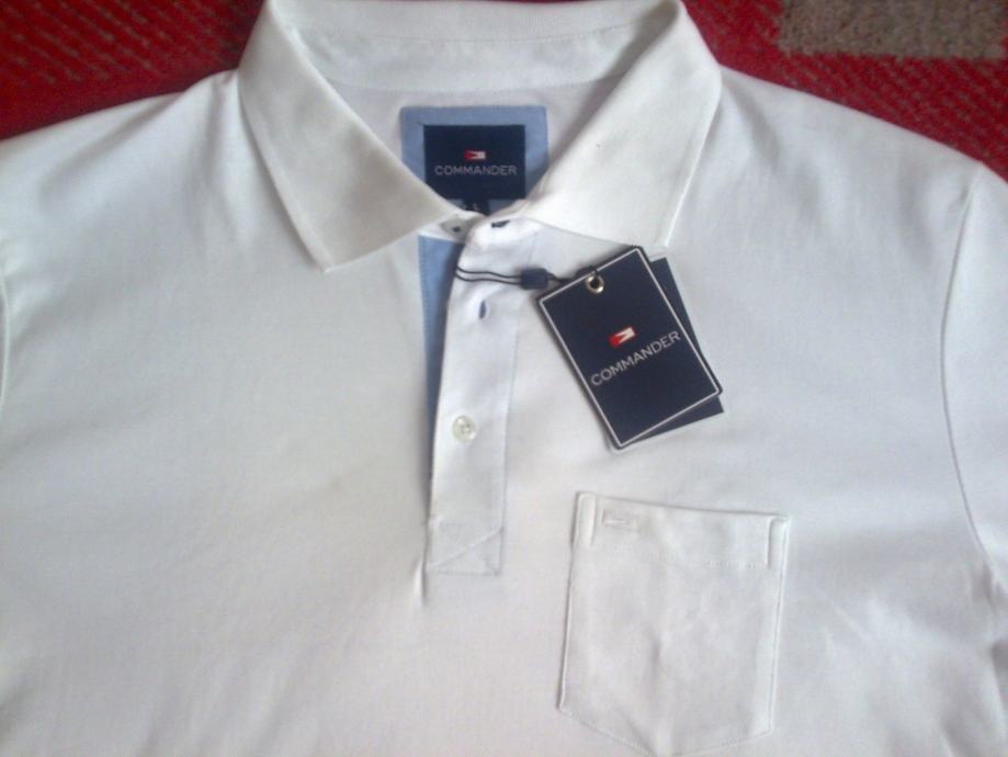 Polo Majica "COMMANDER" vel L nova. Bijela boja - s džepom s prijeda. Dopadljiva majica za ljetne dane. Odlično stanje,nenošena stoju u ormaru. Majica je iznadprosječene kvalitetne tkanine. Dužina 75.5cm, širina 55.5cm, ramena 50cm.