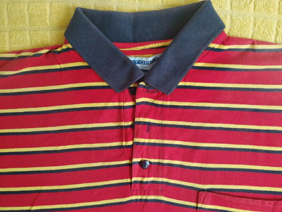Polo Majica "Stormy life" vel M nova. Crvena boja s žuto plavim linijama. Dopadljiva majica za ljetne dane. Odlično stanje,nenošena stoju u ormaru. Majica je iznadprosječene kvalitetne tkanine. Dužina 72cm, širina 53cm, ramena 51cm.