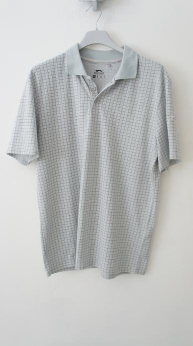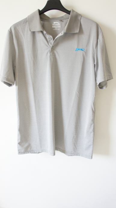 Siva Slazenger polo majica na tanke bijele crte M velicine polyester 10EUR