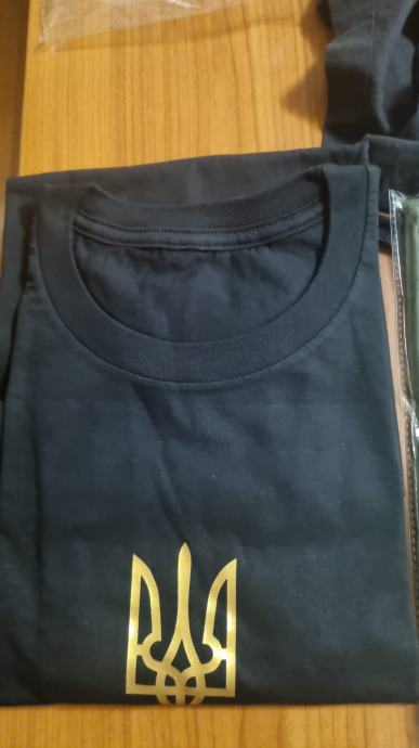 Potpuno nova, pamuk, nekorištena, original zapakirana, majica crne boje s grbom Ukrajine.