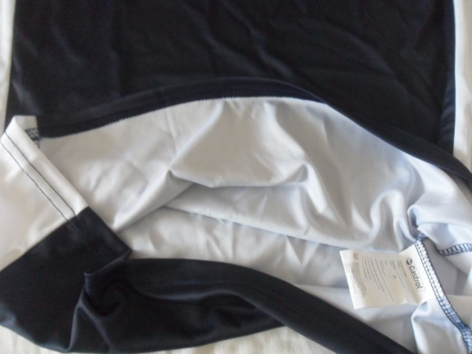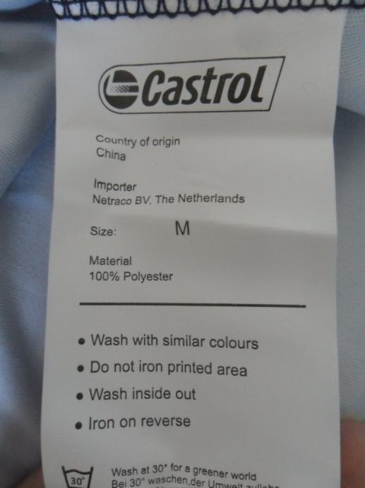 Veličina M(širina 53 cm i visina 72 cm), boja tamno plava s bijelim.
