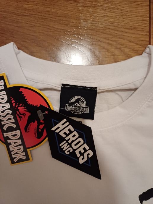 Nova bijela muška majica kratkih rukava Jurassic Park s originalnom etiketom, veličina M. Izrađena je od kvalitetnog pamuka s prepoznatljivim motivom iz filma. Savršen komad odjeće za obožavatelje Jurassic Park franšize.