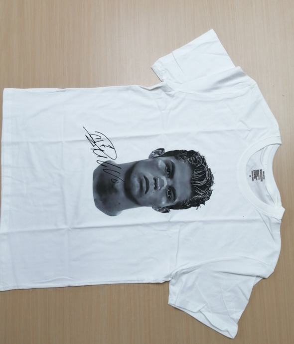 Nova bijela pamučna majica kratkih rukava s grafikom Cristiana Ronalda, veličine M. Majica ima originalnu etiketu, nikad nije nošena. Savršen dodatak za svakog ljubitelja nogometa i obožavatelja poznatog igrača.