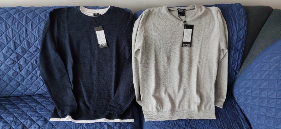 Muški lot koji se sastoji od Nove tanje muške veste. Ne nošene, s etiketom na sebi. Idealno i za poklon. Siva na V izrez, tamno plava okrugli izrez. Hlače maslinasto zelene,nošene par puta. Sve je Veličina muški S. Sve zajedno 30 eura. Pogledajte i ostale moje oglase Pod svi oglasi ovog oglašivača.