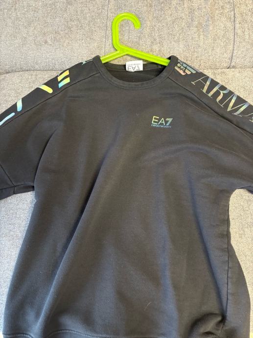 Prodajem Armani EA7 duksu u crnoj boji, veličina L. Radi se o modelu s okruglim izrezom oko vrata i karakterističnim EA7 Armani logom duž rukava u šarenim slovima, što duksi daje prepoznatljiv izgled. Na prsima se nalazi manji EA7 logo.