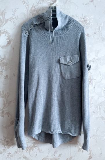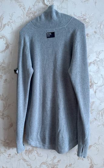 Siva pletena majica, meka, elastična, prilagodljiva.