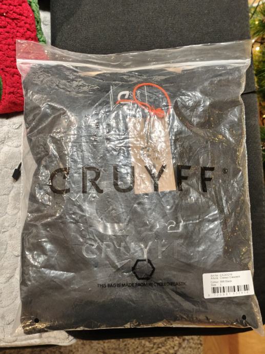Potpuno nova Cruyff majica dugih rukava u crnoj boji s etiketom, veličine L. Elegantni dizajn s istaknutim logom na prednjoj strani idealan za svakodnevno nošenje.