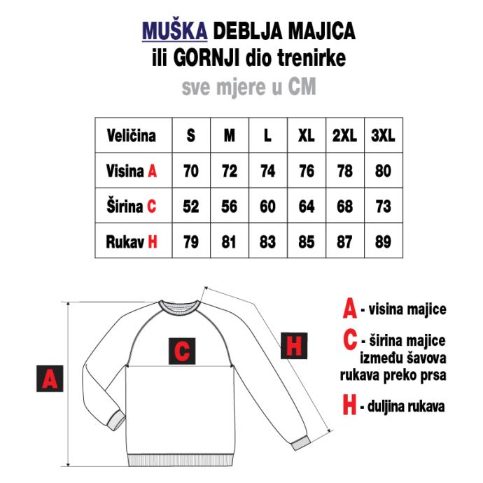 Deblji PULOVER, kao GORNJI dio TRENIRKE, muški i ženski model