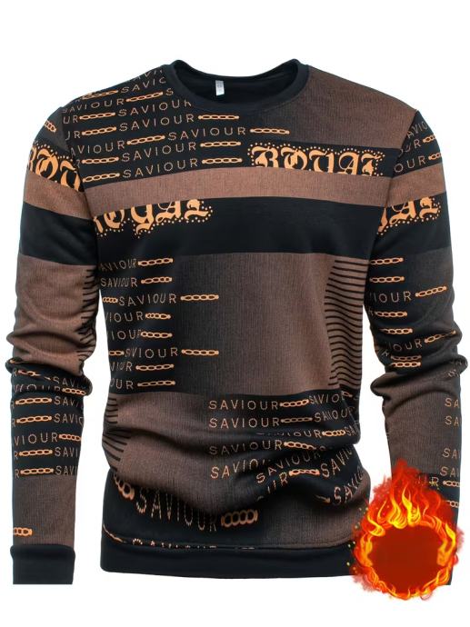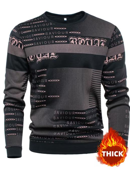 Novi jesensko-zimski muški top od zadebljanog flisa, dugih rukava, okruglog izreza, elegantan i svestran topli pulover, ukrašen engleskim slovima, ležeran muški top pogodan za izlaske i nošenje kod kuće.