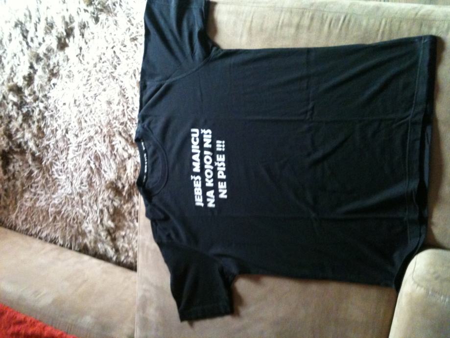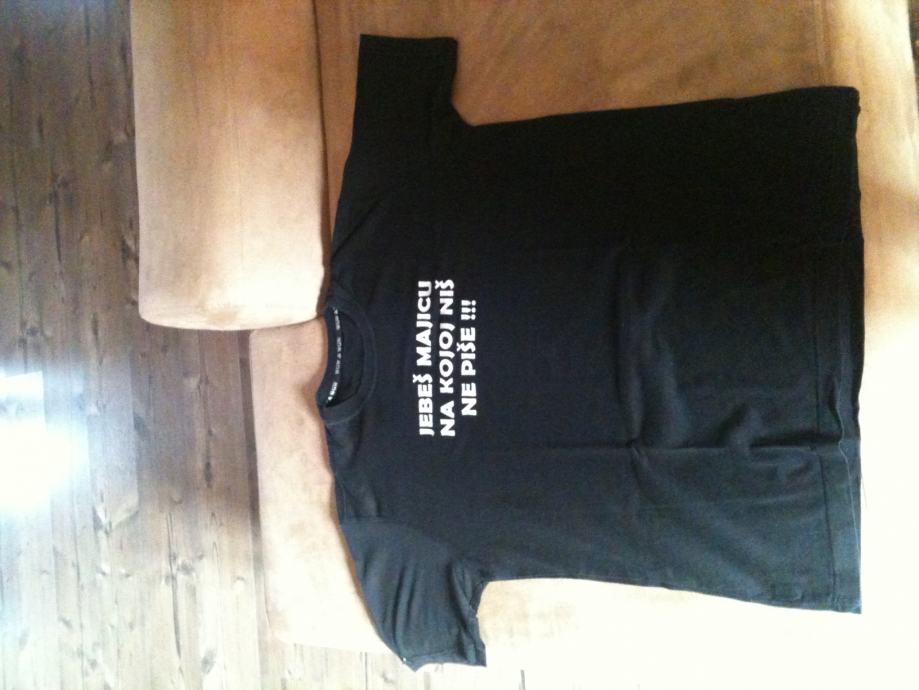 Kratka crna majica sa natpisom: 'J***Š MAJICU NA KOJOJ NIŠ NE PIŠE'