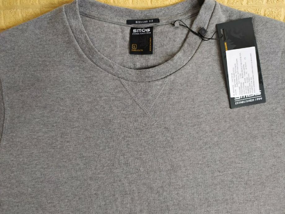 Majica unisex "SMOG" veličina L. Svijetlo siva boja jednobojna, srednje debljine. Made in China. Materijal je 60%pamuk, 40% poliester. Svaki dan za šetnju, kao casual, u prirodu. Dužina 72cm, širina 57.5cm, ramena 48cm, rukav 66cm. Nova odlična.