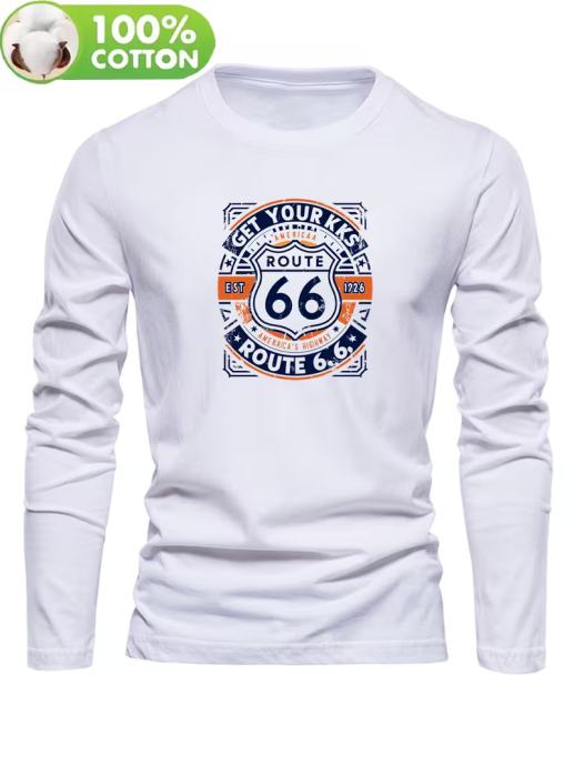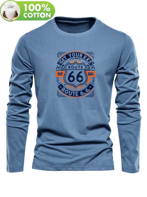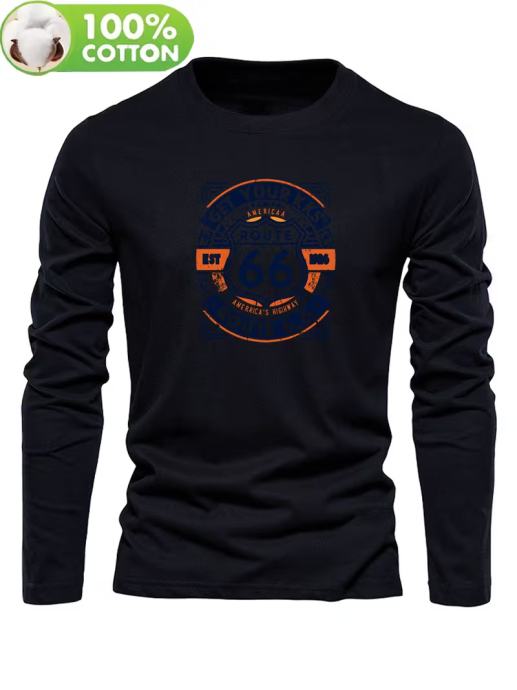 Muška majica dugih rukava od 100% pamuka s retro logotipom Route 66