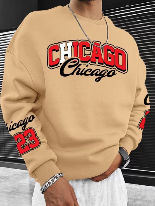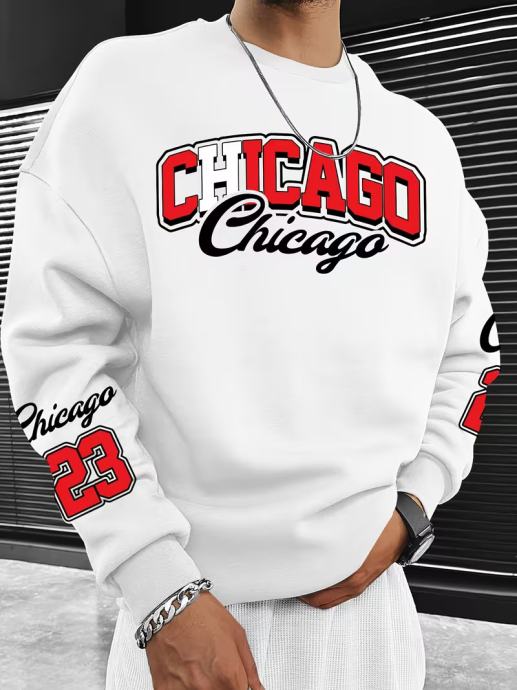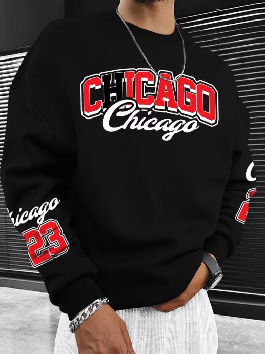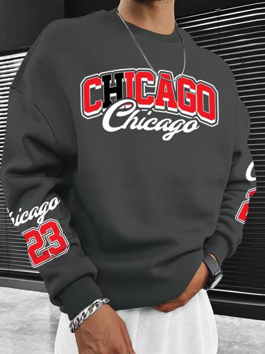 Muška majica s grafičkim printom Chicago 23 - predimenzionirana ležerna majica s 3D natpisom, mekani poliester, okrugli izrez za putovanja, aktivnosti na otvorenom i ležernu odjeću