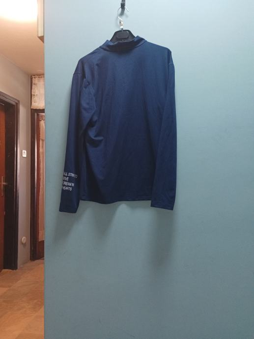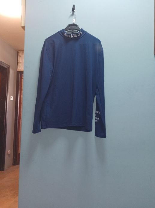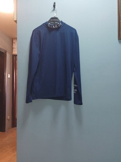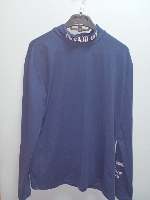 Poklanjam malo nošenu plavu mušku majicu s dugim rukavima, veličine L. Majica ima zanimljiv visoki ovratnik s ukrasnim natpisom i moderan dizajn rukava. Odlična za jesenske i zimske dane, vrlo udobna i još uvijek u dobrom stanju.