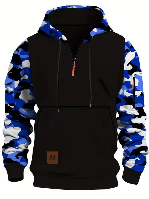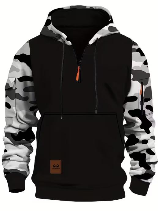 Muška maskirna majica s kapuljačom dugih rukava | Ležeran stil s džepom, blago rastezljiva tkanina, idealna za jesen/zimu