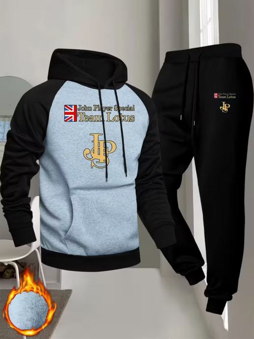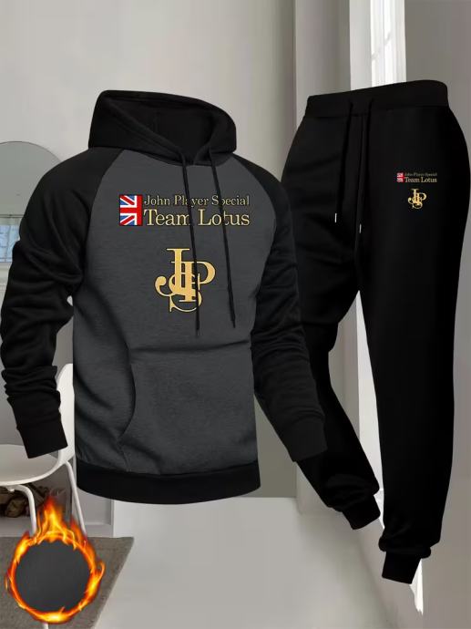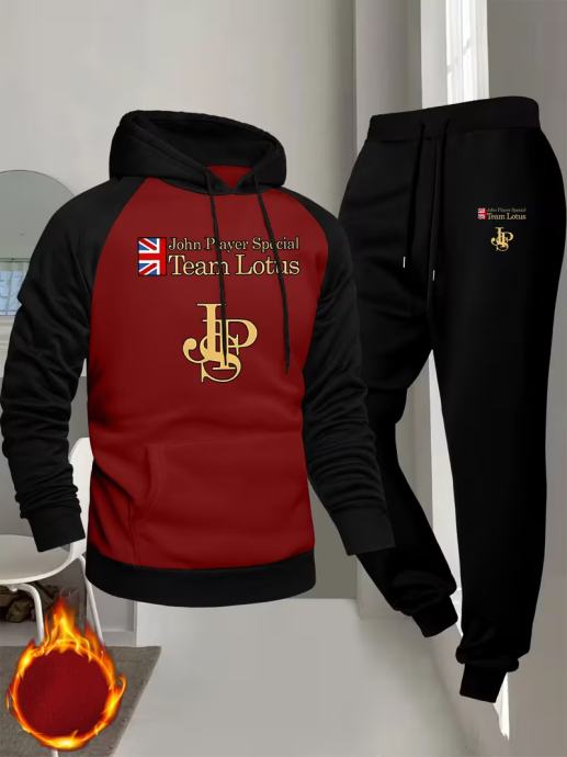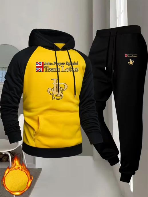 Muški ležerni sportski set od dva dijela s kapuljačom i raglan rukavima, dvobojna majica s kapuljačom i printom John Player Special Team za Lotus, ležeran, svestran i moderan set s kapuljačom