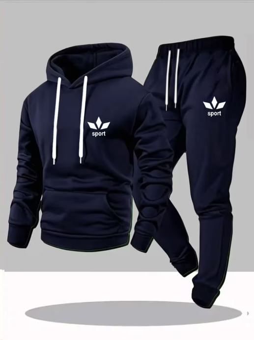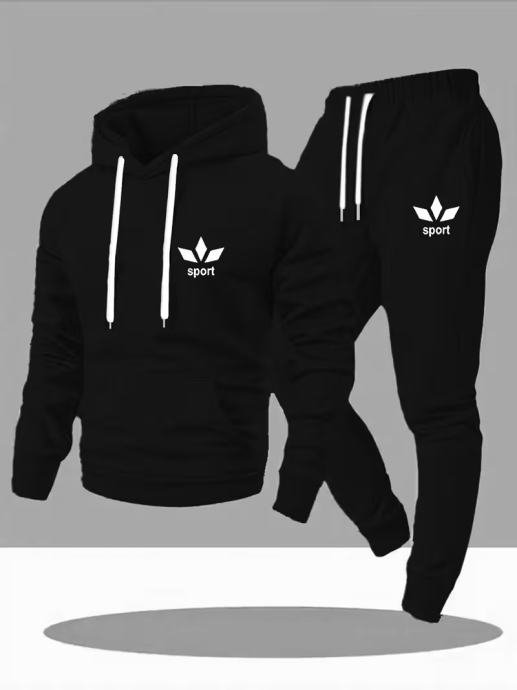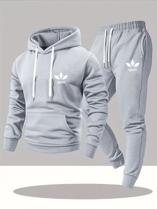 Muški ležerni sportski set od dva dijela - majice s kapuljačom i dugih trenirki, savršen za sportove na otvorenom i slobodno vrijeme, hodanje