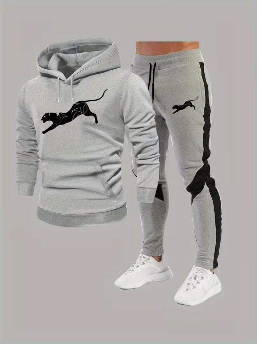 Muški set majica s kapuljačom za jesen i zimu, sportska odjeća prikladna za jesen i proljeće, uključujući trenirku i hlače.