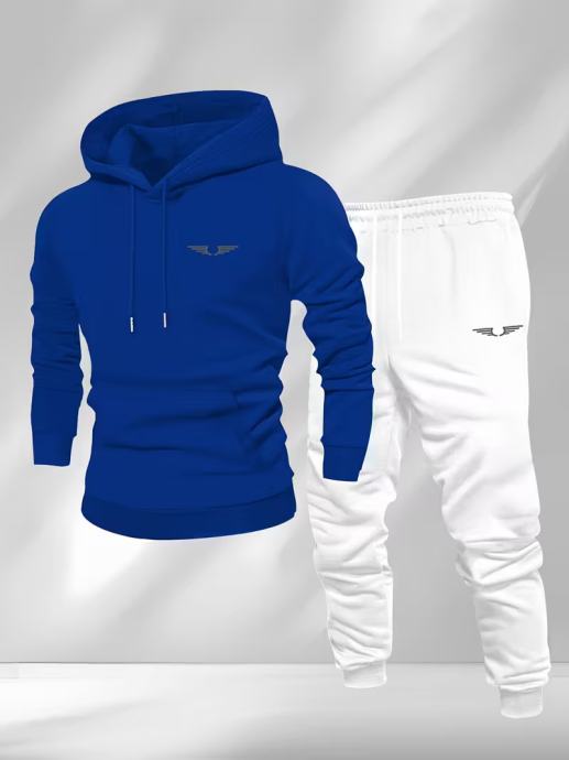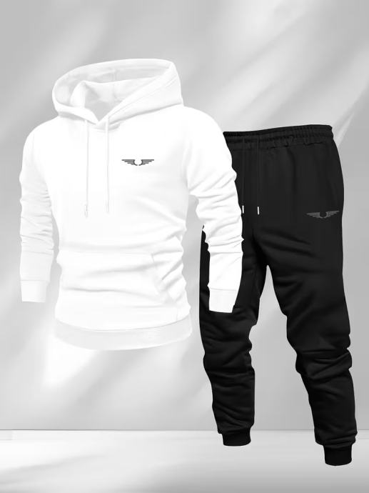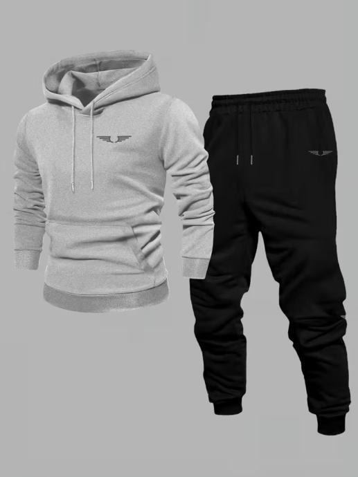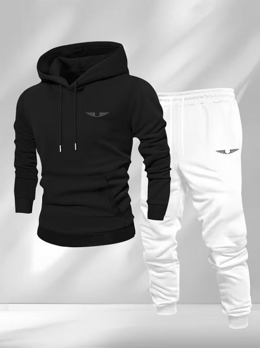 Muški udobni set od baršunaste majice s kapuljačom i hlača | Crno-crveni geometrijski uzorak, široki pulover dugih rukava, ležeran ulični stil za jesen/zimu
