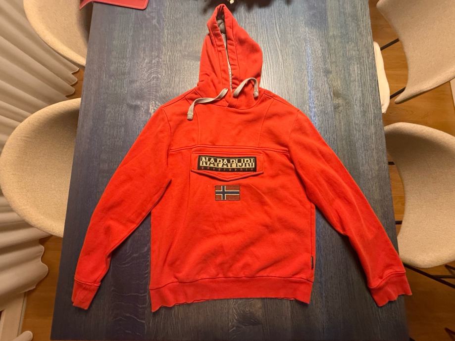Prodajem rabljenu Napapijri Burgee mušku hudicu veličine S u crvenoj boji. Izrađena je od pamuka i ima prepoznatljiv Napapijri logo s norveškom zastavom na prednjoj strani. Hudica je u dobrom stanju i idealna za svakodnevno nošenje.