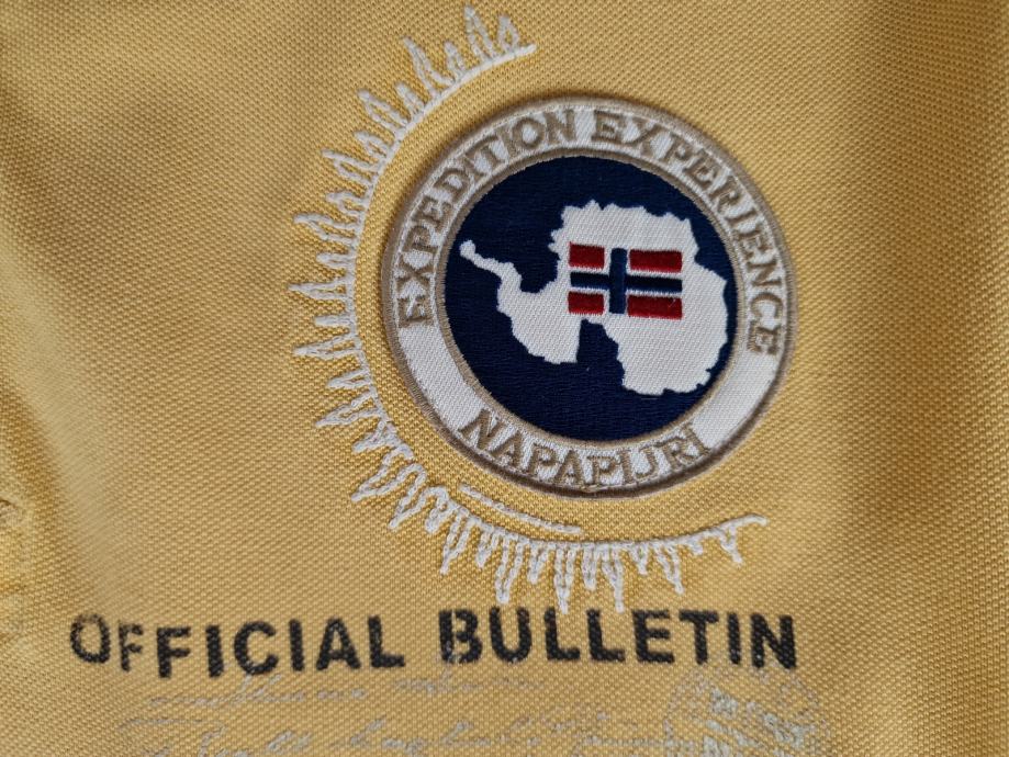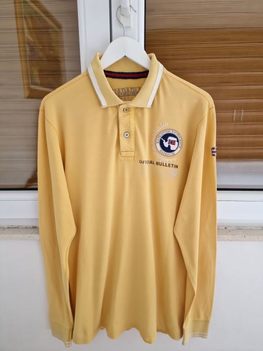 Prodajem Napapijri žutu polo majicu dugi rukav. Original, odlično očuvana, veličina: XL, prsa: 59 cm. Ostale krojačke mjere na upit.. Šaljem poštom ili Tisak paketima poslije uplate.