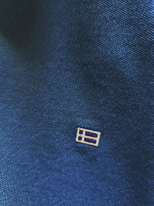 Boja je petrolej plava, na kragni bijela i crna pruga.