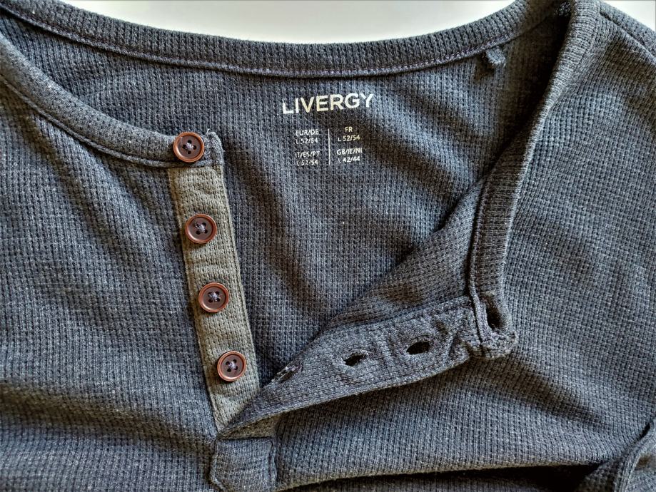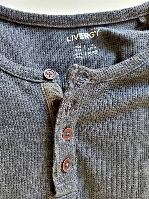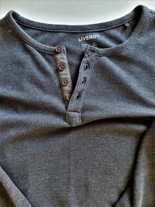 Plava (blue melange-navy) muška majica dugih rukava na gumbiće,